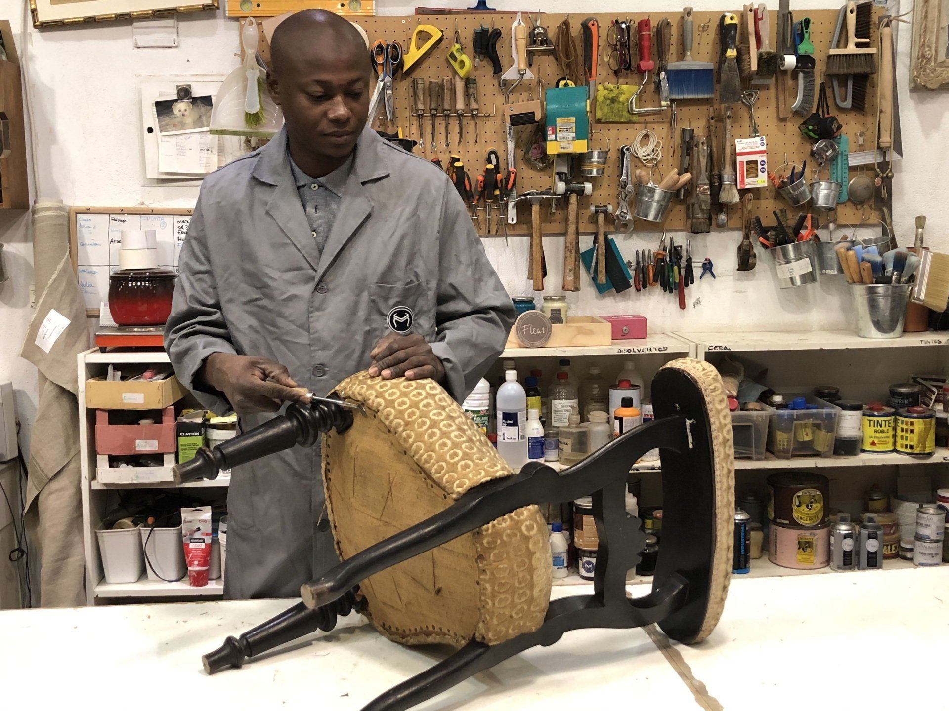 Nací en Dakar, Senegal, y allí me formé en las especialidades de carpintería y ebanistería. Posteriormente he realizado cursos de tapicería, pero sin lugar a dudas, mi pasión es el diseño de muebles, trabajo que realizo cada vez que puedo. Por otro lado, mi oficio como restaurador me da mucha satisfacción viendo como cada pieza retoma su esplendor y el valor que se merece.